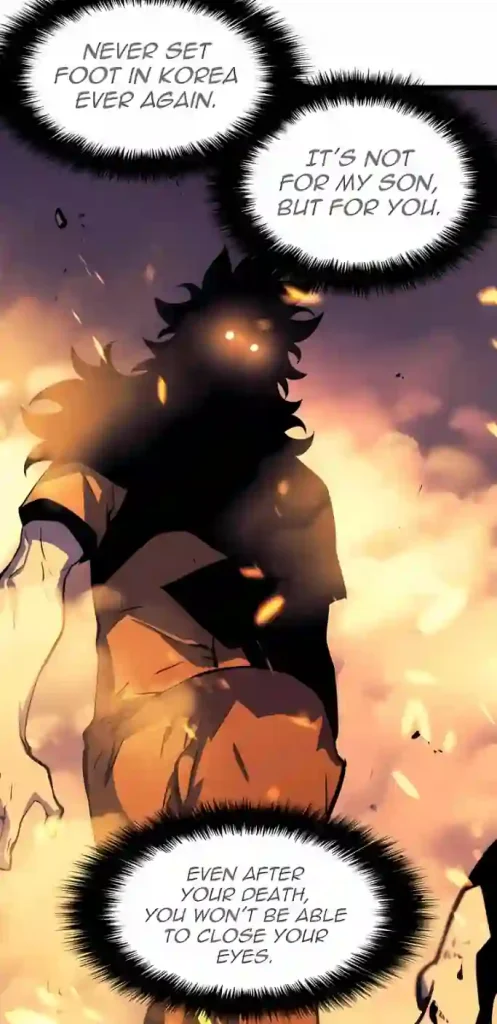 The most heartbreaking part was when Sung Jin Woo’s father sacrificed his life for his son. After the battle between the monarchs and our hero Jin Woo finished (Manhwa Chapter 166). Sung Il-Hwan realizes he broke the deal between him and the rulers. So he’s going to die. During his last movements, he and his son had an emotional conversation, which was very sad to see.
